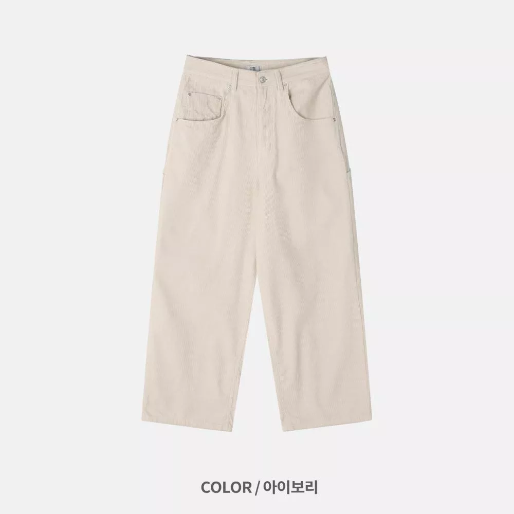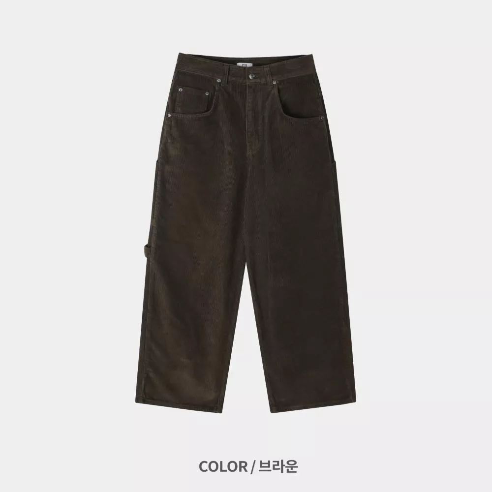用燈芯絨面料製作的工裝褲。
