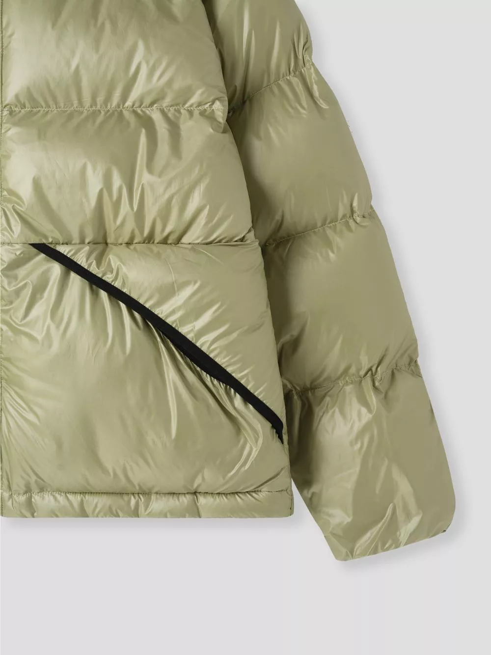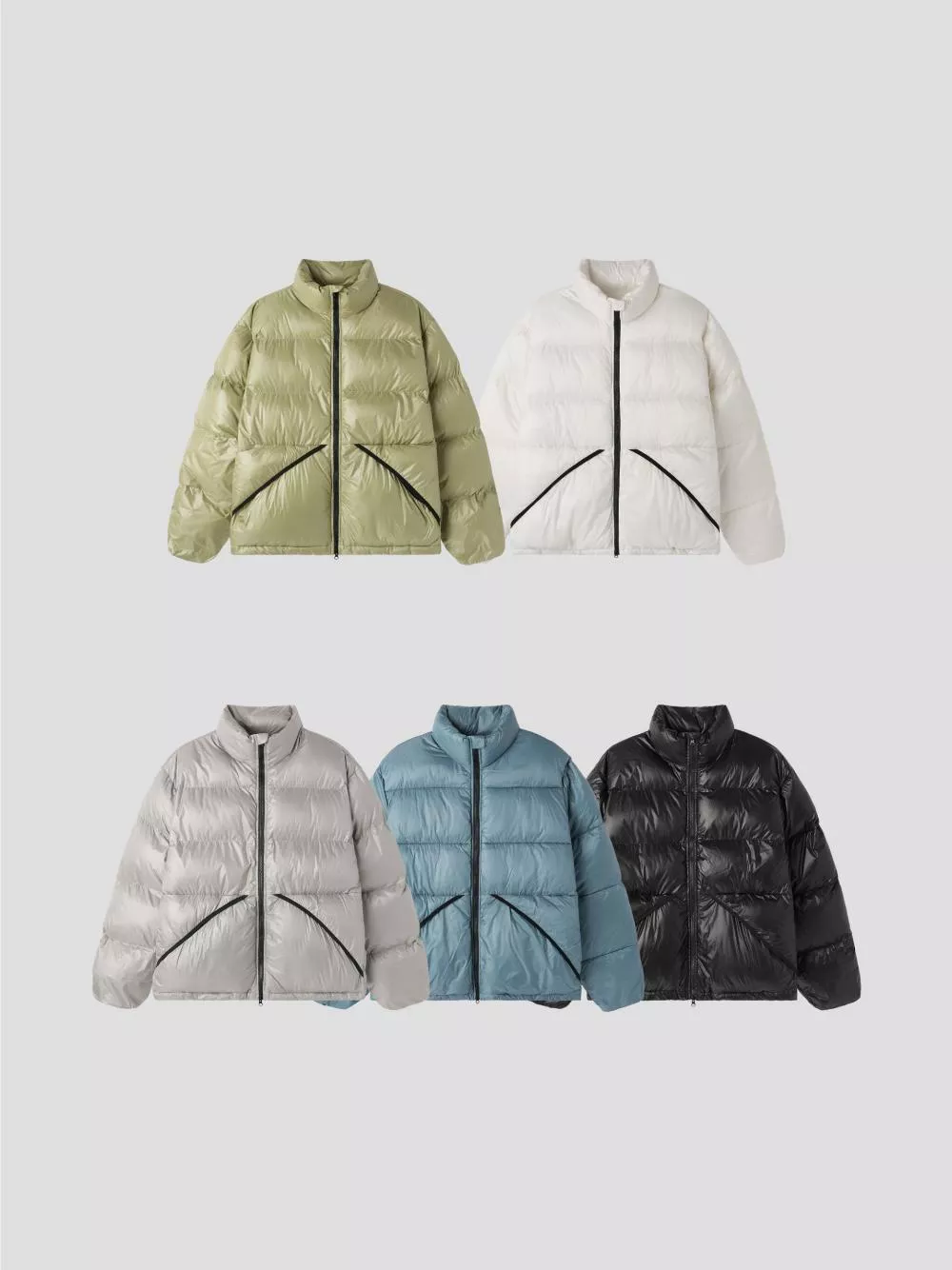 斜線拉鍊細節很有魅力的發熱羽絨服。