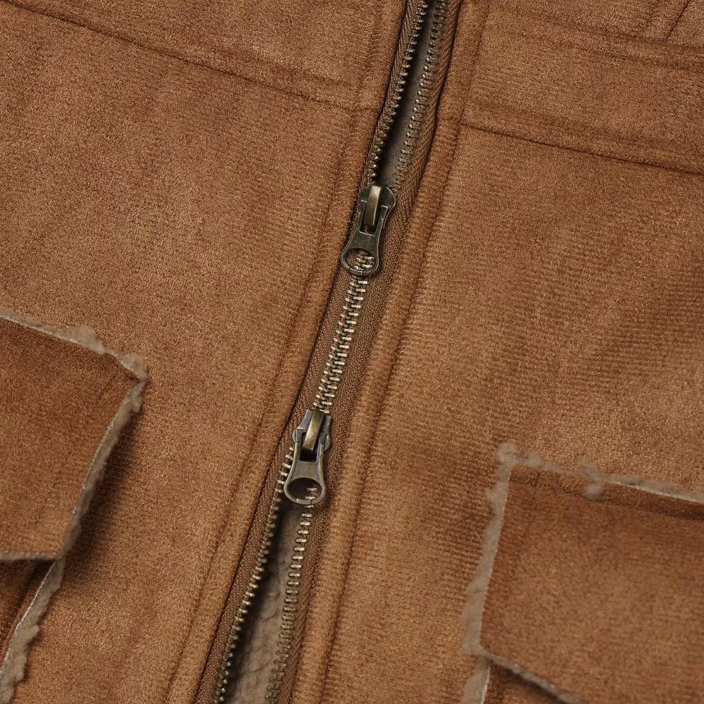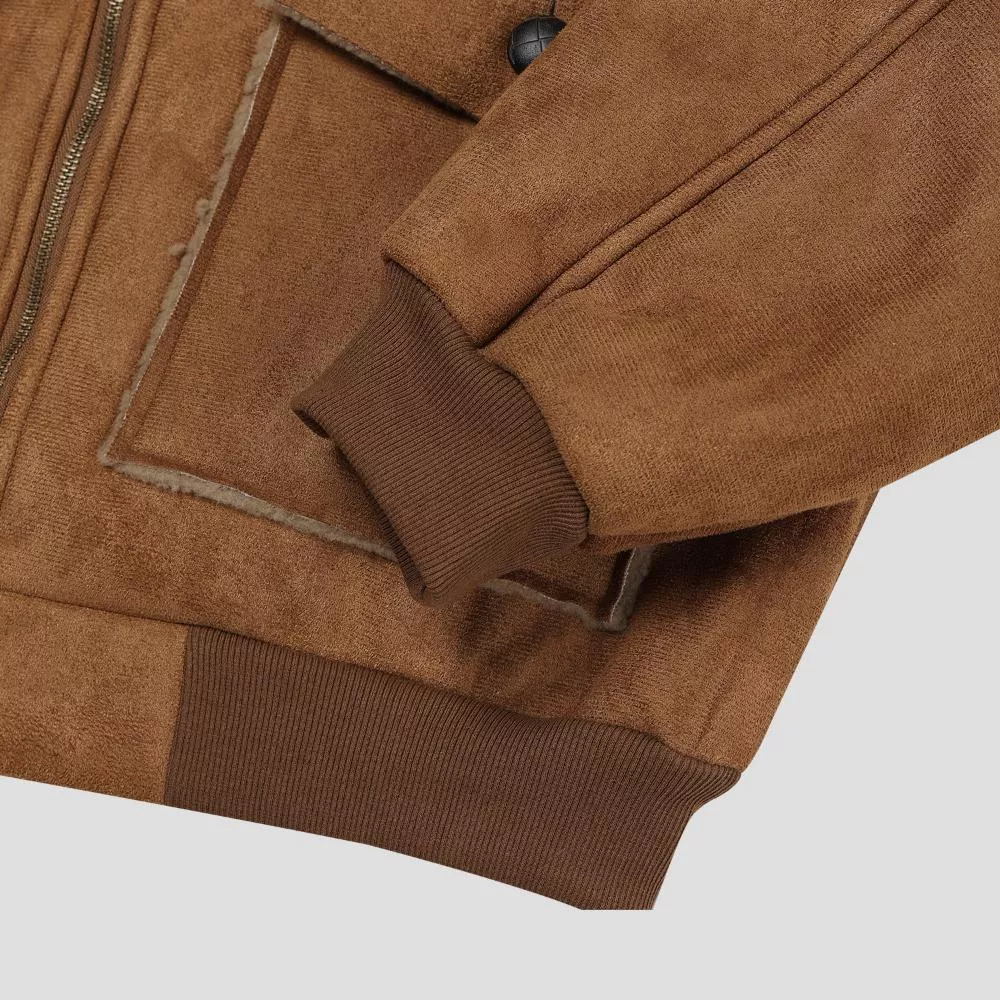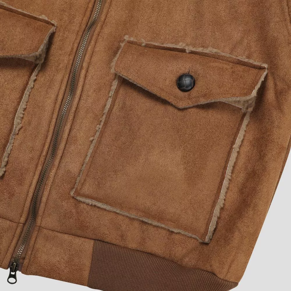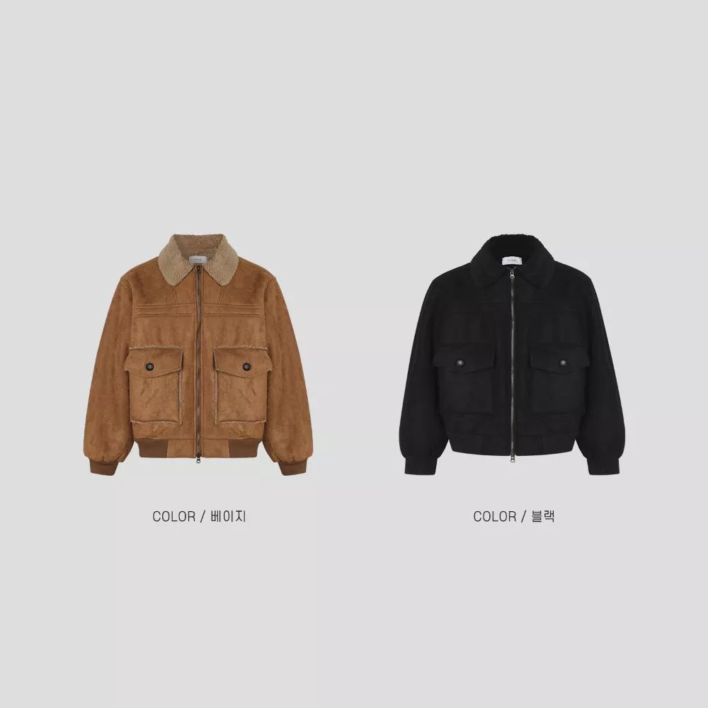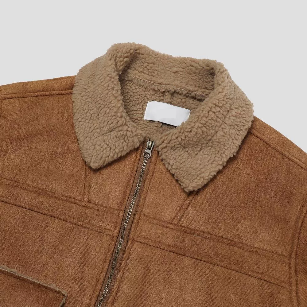 採用絨面革材質的羊羔毛外套