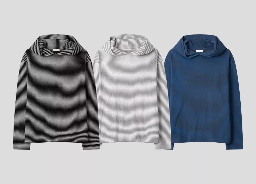 薄薄的條紋圖案和寬鬆的連帽衫設計