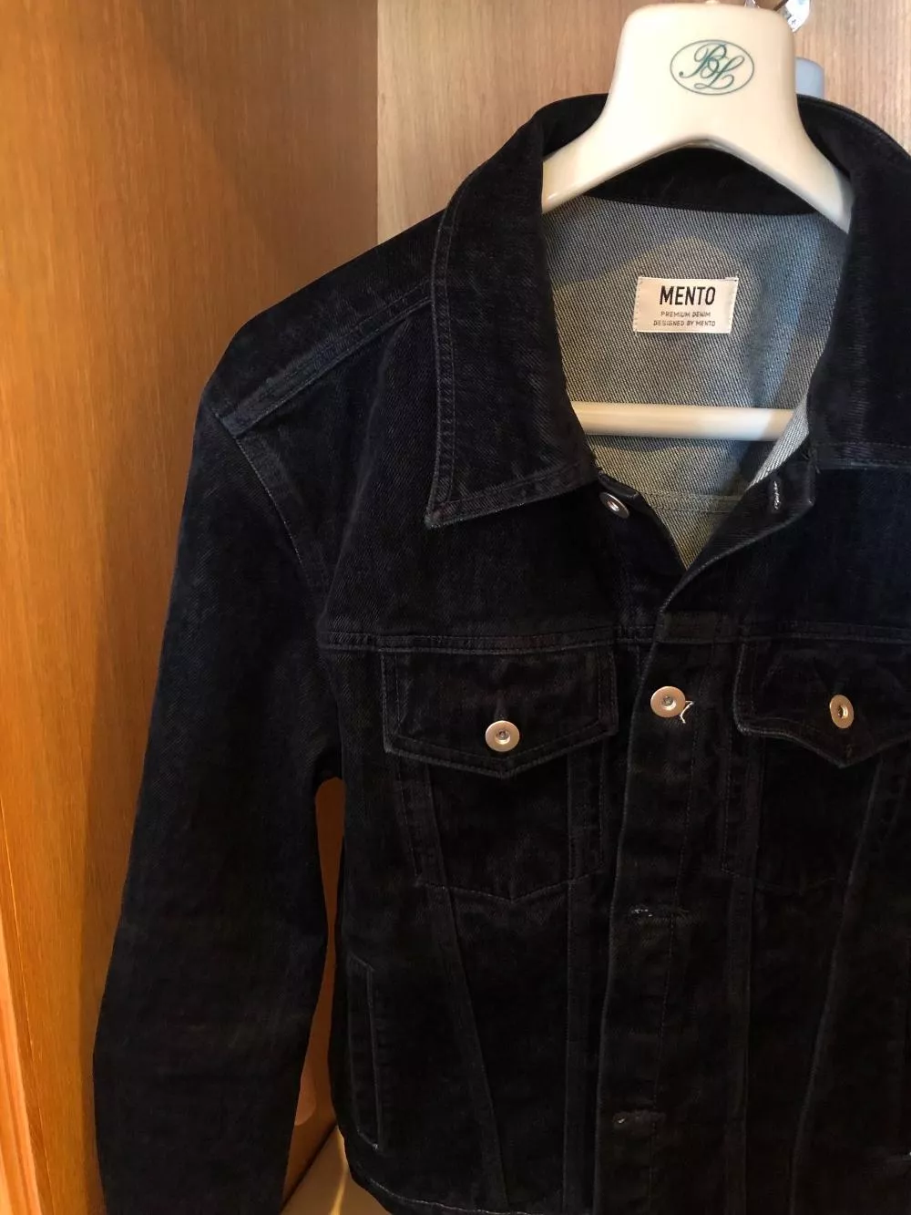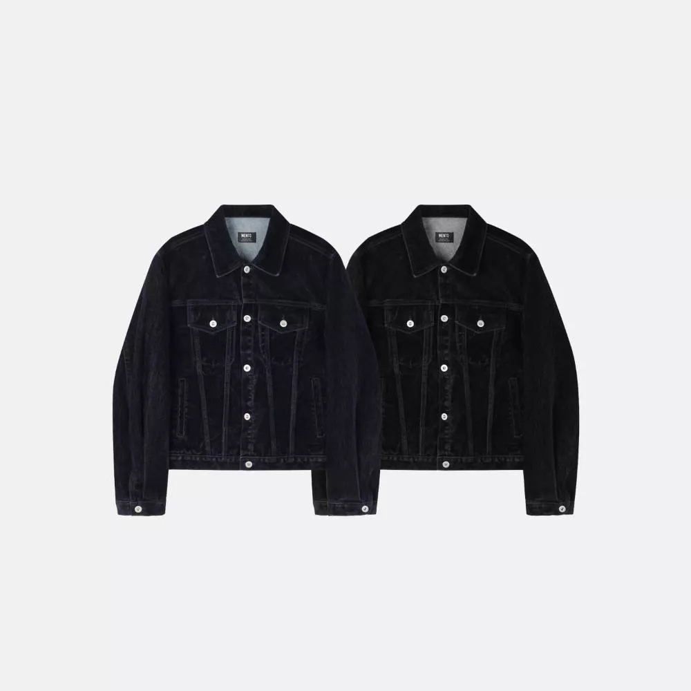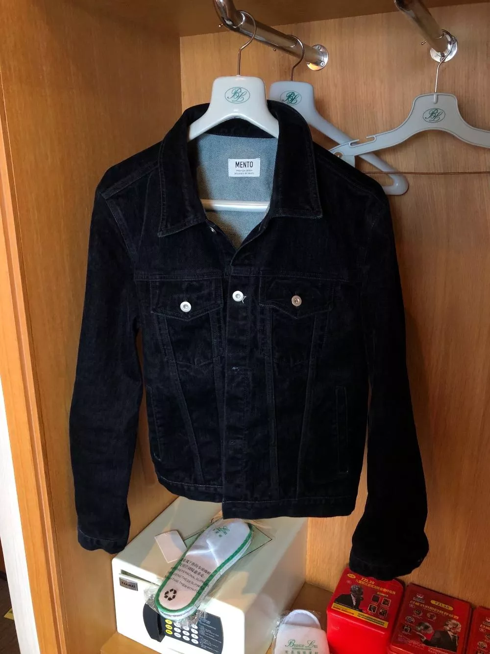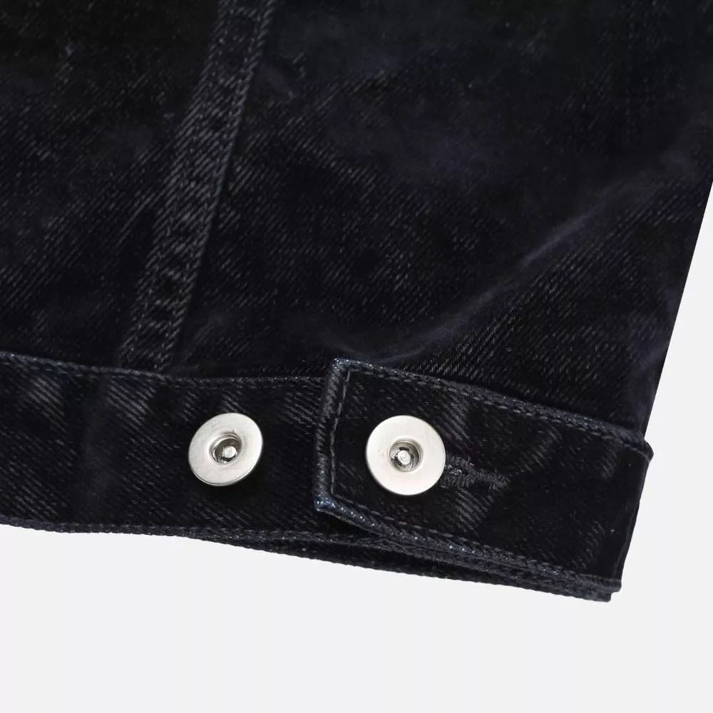 採用高階氛圍的天鵝絨材質的牛仔夾克。